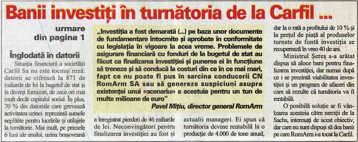 Tun - Banii investiti in turnatoria de la Carfil parca s-au topit