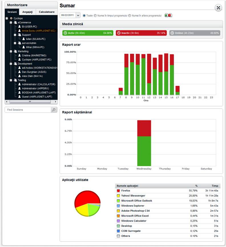 „De la instalare, până la modul în care afişăm rapoartele, totul s-a reinventat. E mult mai simplu acum – asta ne spun toţi clienţii cu care am pre-testat softul”, declară Dan Gurghian, Business Development Managerul Amplusnet. „Cyclope 6.0 aduce o interfaţă nouă, o capacitate de operare mult îmbunătăţită, simplificarea procesului de instalare, posibilitatea trimiterii rapoartelor direct în email-ul managerilor şi o capacitate sporită de personalizare la specificul companiilor client”, a declarat Ionel Orza, Directorul de vânzări al Amplusnet pentru România. În câţiva paşi, fără a fi necesare alte programe sau librării adiţionale, softul se poate instala pe orice staţie, în orice reţea – chiar şi de 1000 de calculatoare. Managerii au acum la un click distanţă orice raport privind activitatea angajaţilor, iar rapoartele cronologice şi de productivitate permit o analiză în detaliu a tuturor proceselor şi activităţilor din cadrul companiei (internet, documente, aplicaţii). Peste 95% din companiile care testează Cyclope primesc informaţii relevante despre felul în care lucrează angajaţii lor încă din primele 15 zile în care aplicaţia le este oferită gratuit pentru evaluare. Angajatorii descoperă adesea un grad de activitate al angajaţilor mult sub imaginea lor de până atunci, pentru ca apoi să observe o îmbunătăţire de minim 45 de minute lucrate în plus pe zi/angajat după informarea acestora că sunt monitorizaţi.