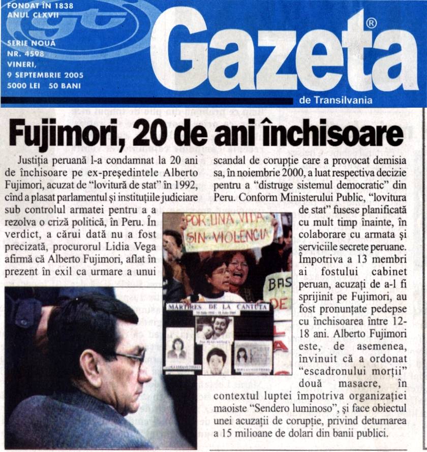 Fujimori, 20 de ani inchisoare