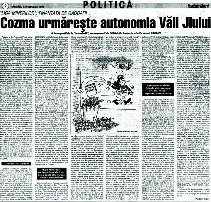Cozma urmareste autonomia Valii Jiului